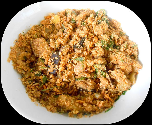 sal moderadamente, pois a berinjela levou sal. Finalizar a farofa com os